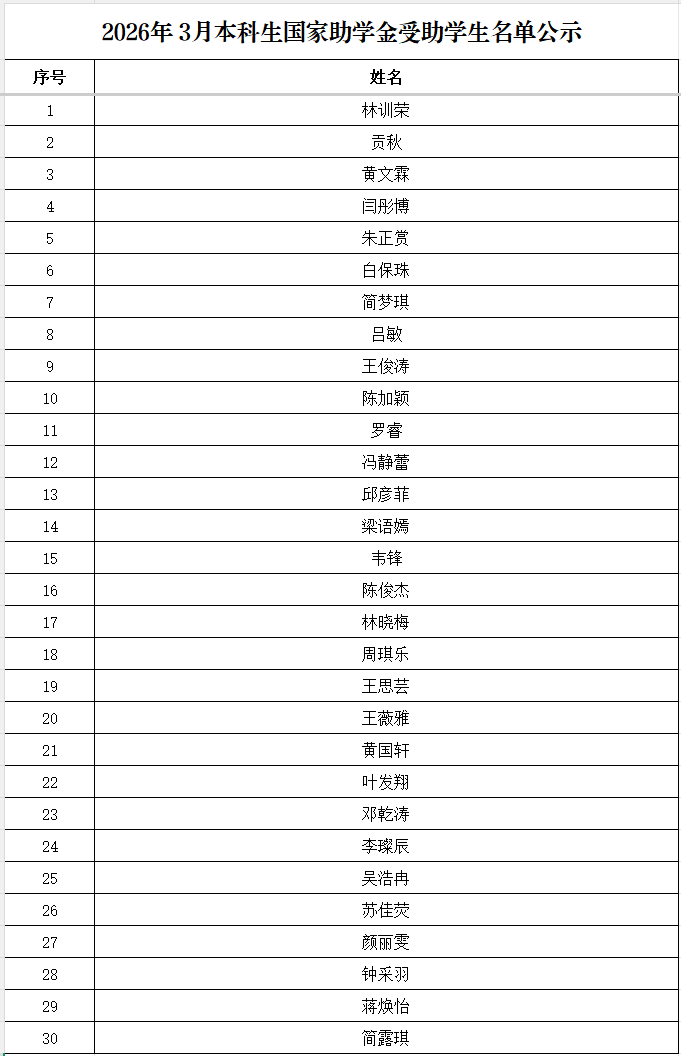 伦理片 2026年3月本科生国家助学金受助学生名单公示